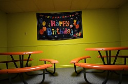 - You can bring table coverings and helium filled balloons. No glitter, confetti, or silly string.